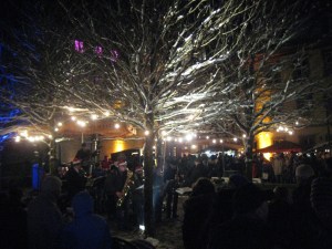 Tolle Atmosphäre im Schleifrashof beim Adventsmarkt mit Handwerkskünstlern und Live-Musik.